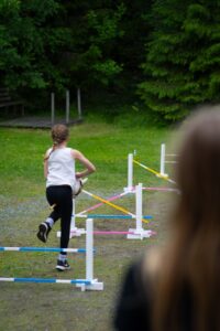 På lägret får du göra en egen käpphäst med tillbehör, hoppa och rida dressyr.