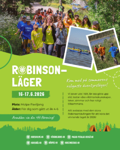 Årets Robinsonläger hålls i Molpe 16-17.6.2026. Mera info hittar du under fliken Evenemang!